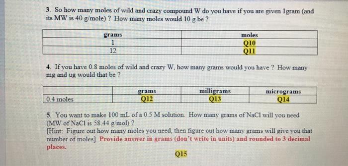 Solved 3 So How Many Moles Of Wild And Crazy Compound W Do Chegg Com